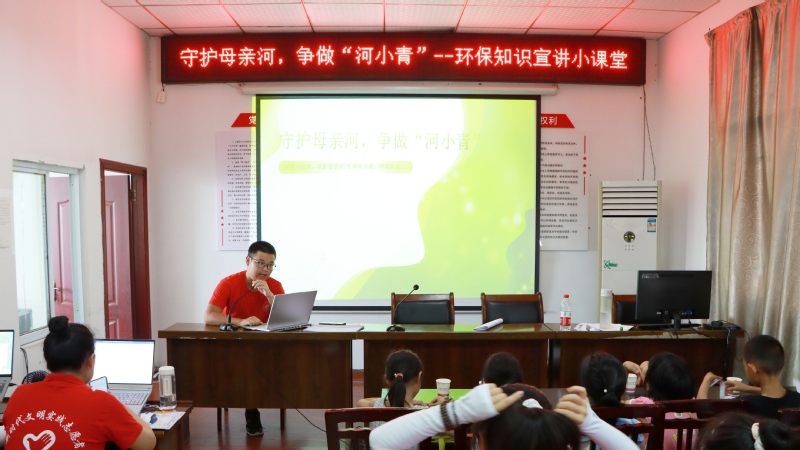 绿水青山就是金山银山,7月11日下午,JN体育“蒲公英”志愿服务团于松柏村开展了“保护母亲河,争做河小青”知识宣讲活动,松柏村留守儿童及全体志愿者参与其中。