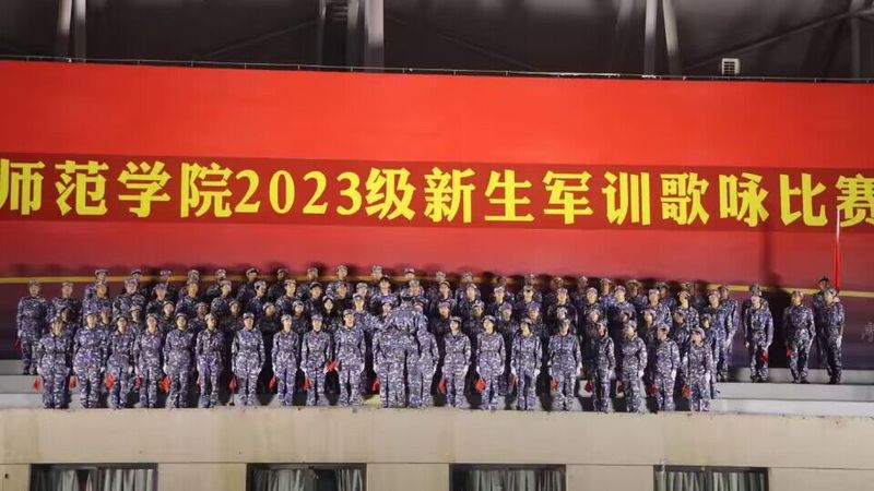 9月22日晚6时30分,学校举行2023级新生军训歌咏比赛,2023级军训员工积极参与其中。
