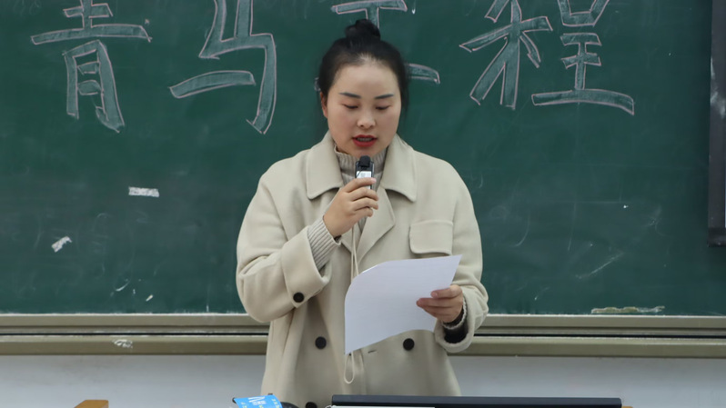 仪式第三项,邓先蓉老师做动员讲话。邓老师对“青马工程”进行介绍,强调本次培训的重要意义,同时,邓老师向本次“青马班“学员提出希望与要求,希望他们能学有所获、学有所用,通过本次培训提高自身理论水平、增加社会实践经验,争做时代新青年。