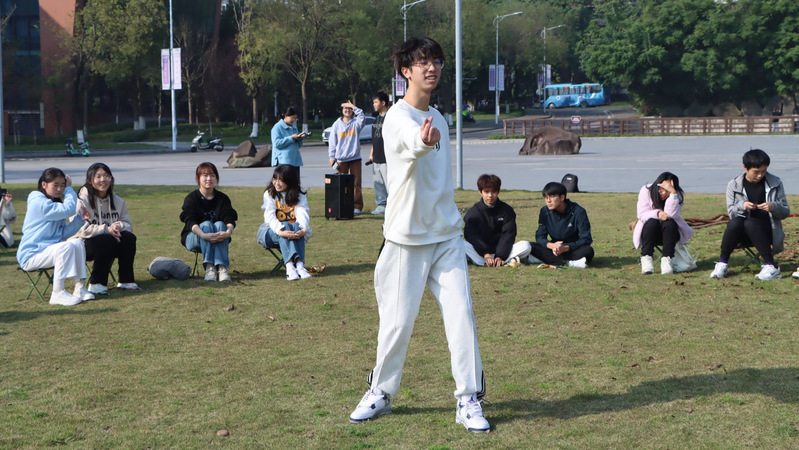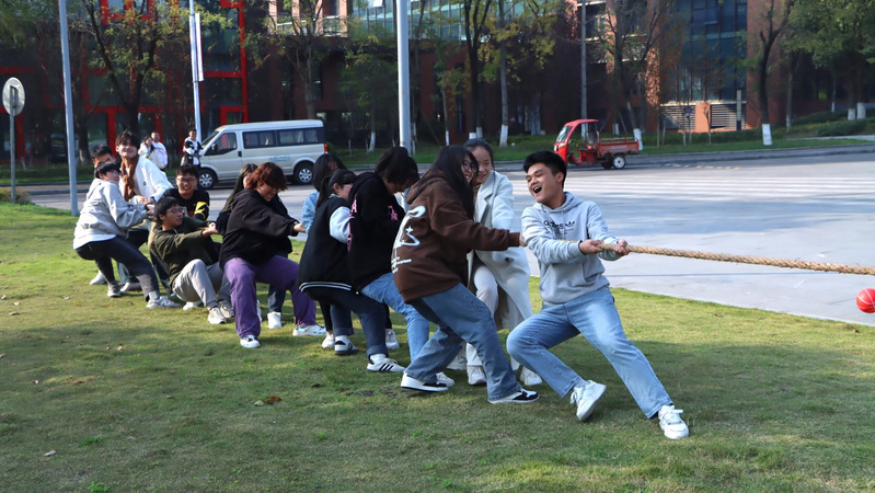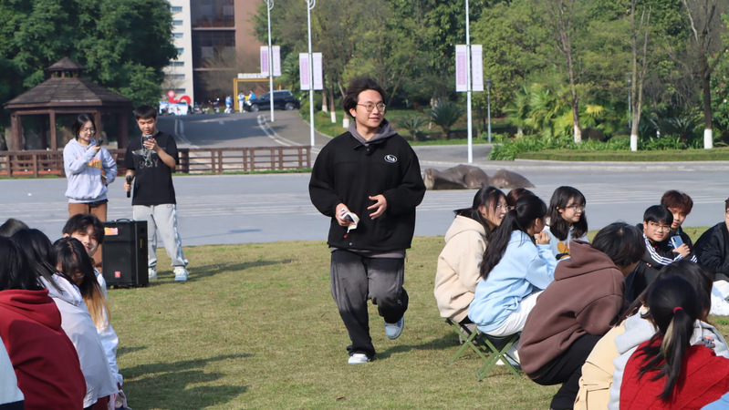 全体成员分为两组进行丢手绢的预热游戏,游戏共进行两轮,在音乐结束时仍手持手绢者上台进行才艺表演。紧接着,全体成员以预先的分组进行了拔河比赛,各位成员积极参与,团结一致。比赛结束后,全体成员共同进行了最后一项“五角一元”抱团游戏,让各位成员在游戏中加深了解、彼此熟悉。
