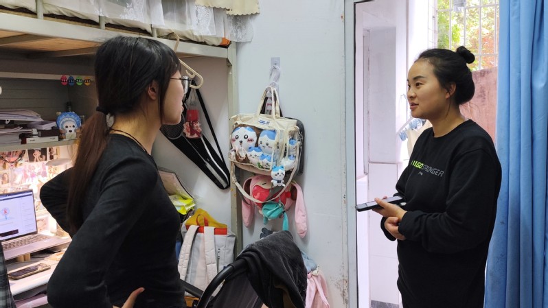 公司领导老师对寝室内务、寝室卫生情况、用电安全以及寝室内部关系等方面做了细致的访查,对发现的违规情况现场督促整改。同时,老师们亲切地询问同学们的日常生活状况、学习情况、身体素质等方面问题,并且希望宿舍成员间可以友爱互助,建立优良的寝室氛围。