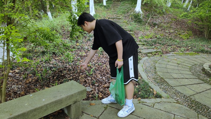 活动过程中,入党积极分子们手拿垃圾袋,用夹钳等工具展开了清理工作,他们不嫌脏乱,积极参与实践,拾取小路沿途的纸屑、烟头、塑料等垃圾。他们用实际行动证明了作为入党积极分子该有的责任与担当。他们分工明确,干劲十足,经过大家的努力,双亭山的小路焕然一新。
