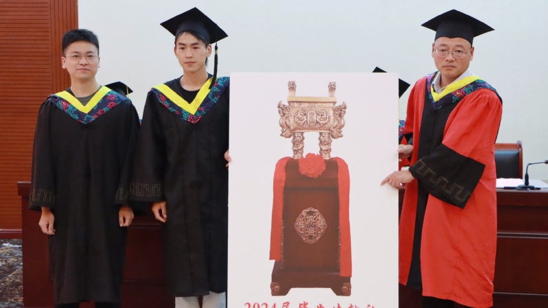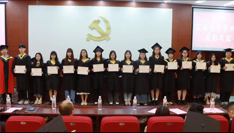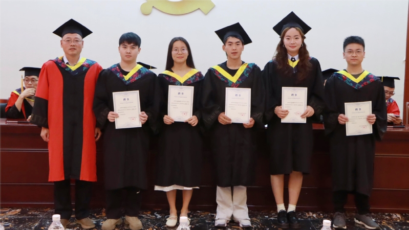 会议第五项,学院学位评定委员会老师为取得毕业证和学位证的毕业生颁发证书,为新晋毕业生取得的努力和收获加入鲜艳的标志。