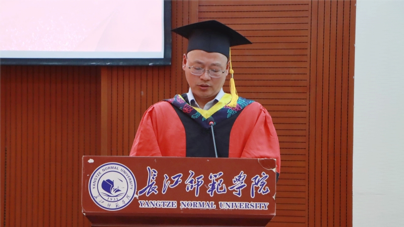 授位仪式结束后,优秀毕业生代表谢秋燕发言。她饱含对母校的依依不舍之情和深厚的同学情谊分享了自己的心路历程,感慨万千,表示自己将会在人生的新篇章中将继续奋斗、坚定信心,更好地为社会做出贡献。