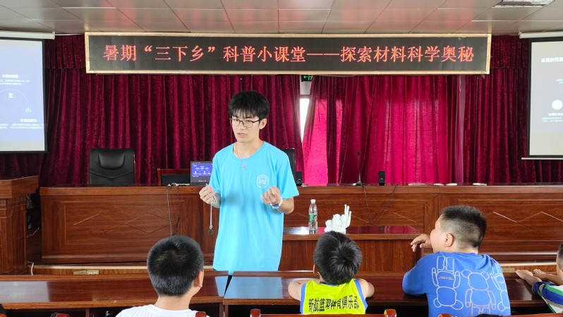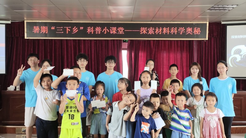 7月9日下午3时整,JN体育“蒲公英”志愿服务团于焦石镇东泉社区开展暑期“三下乡”科普小课堂——探索材料科学的奥秘。