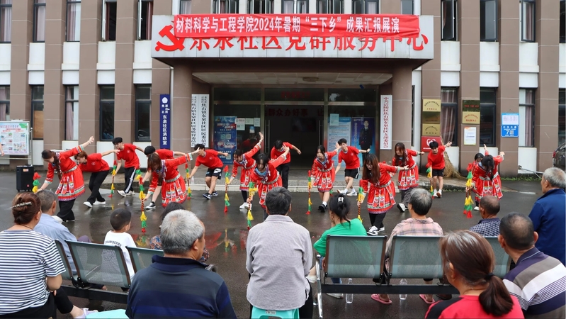 7月11日下午5时整,我学院“蒲公英”志愿服务团于焦石镇东泉社区开展暑期“三下乡”文艺汇演。东泉社区全体工作人员,志愿者服务团全体成员,以及部分社区居民参加了此次文艺汇演。