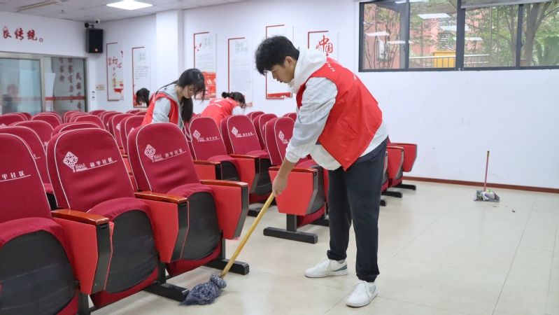 活动开始,志愿者们拿着扫帚、拖把,分工明确,对社区的公共区域、活动室等进行全方位的清洁打扫。在志愿者们的辛勤劳动下,和平社区环境焕然一新,每个角落都洋溢着整洁与和谐,为社区工作者们提供了整齐、干净的工作环境。