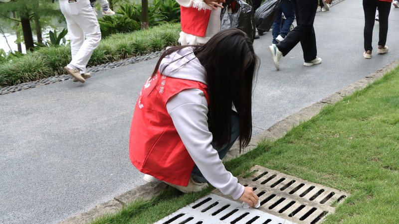活动过程中,志愿者们身着“河小青”红色马甲,分工协作。他们两两一组,一人捡拾垃圾,一人提垃圾袋,仔细清理散落在河边和草坪中的垃圾,包括塑料瓶、包装袋、烟头等。在清理过程中,志愿者们不怕脏、不怕累,认真细致地进行工作,不放过任何一个卫生死角。经过1个多小时的不懈努力,垃圾被一一清理干净,湖岸环境也变得更加优美。