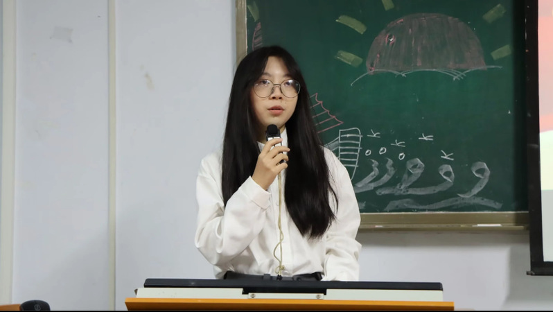 学员代表刘莹芯上台发言,她分享了自己对“青马工程”的理解和期望,以青马工程为起点,努力学习,积极实践,成为有理想、敢担当、能吃苦、肯奋斗的新时代好青年,为实现中华民族伟大复兴的中国梦贡献自己的青春力量!