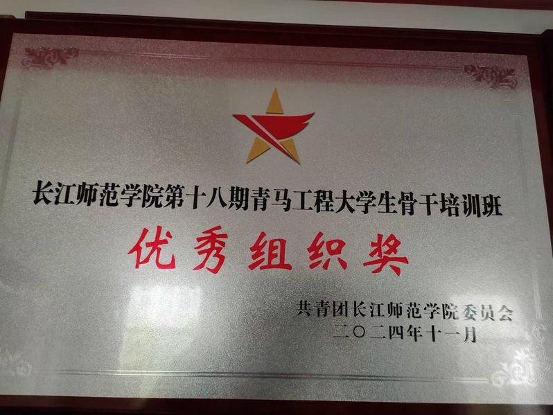 在江南体育官方网站开展的第十八期青马工程老员工骨干培训班中,jn江南团委荣获“优秀组织奖”。