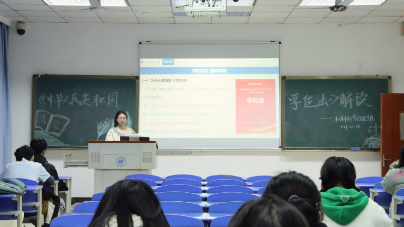各班重点围绕《学位法》的制定背景、发展历程和修订意义开展学习和讨论。重点就学位授予条件、程序及质量保障等内容进行了充分讨论,让同学认识到《学位法》是保障学位授予工作规范化、维护学位申请人合法权益的重要法律依据。学位法的实施将优化学位管理体系,提升学位的含金量,增强我国高等教育的国际竞争力。