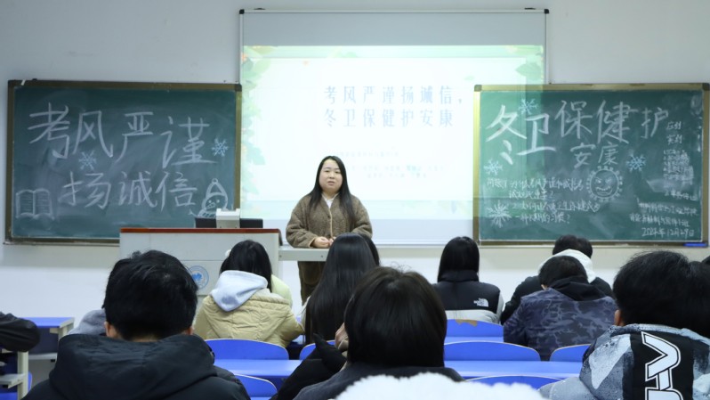 为加强考风考纪建设,提升员工诚信意识,同时强化冬季安全教育。12月29日下午4时30分,jn江南于崇礼楼513、514、515、516、517、518教室开展“考风严谨扬诚信,冬卫保健护安康”主题班会。公司党委副书记李武斌,全体辅导员,部分班导师参加了此次班会。