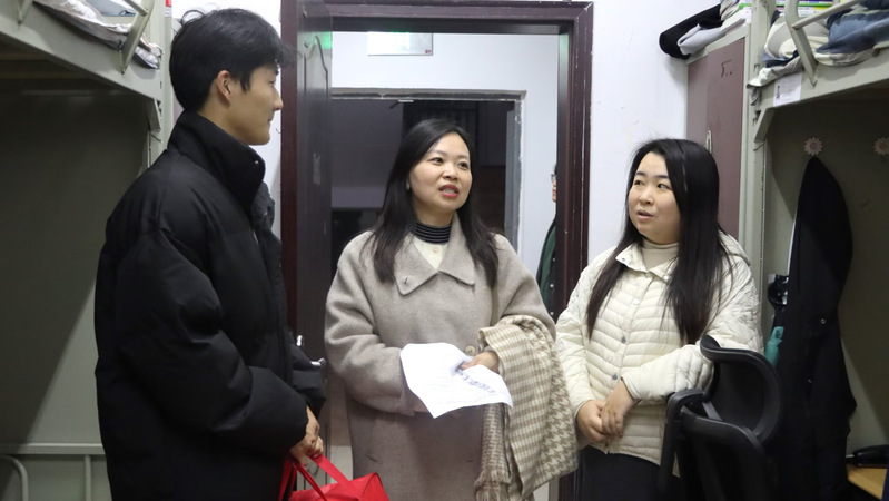 林琳书记和辅导员老师深入员工宿舍,详细了解员工的家庭情况和目前的思想动态,并亲自为这10名家庭经济困难员工发放了“暖心棉被”,积极引导员工做好学业规划,鼓励员工积极面对挑战,努力提升专业技能,为接下来的学业与职业发展奠定坚实基础。