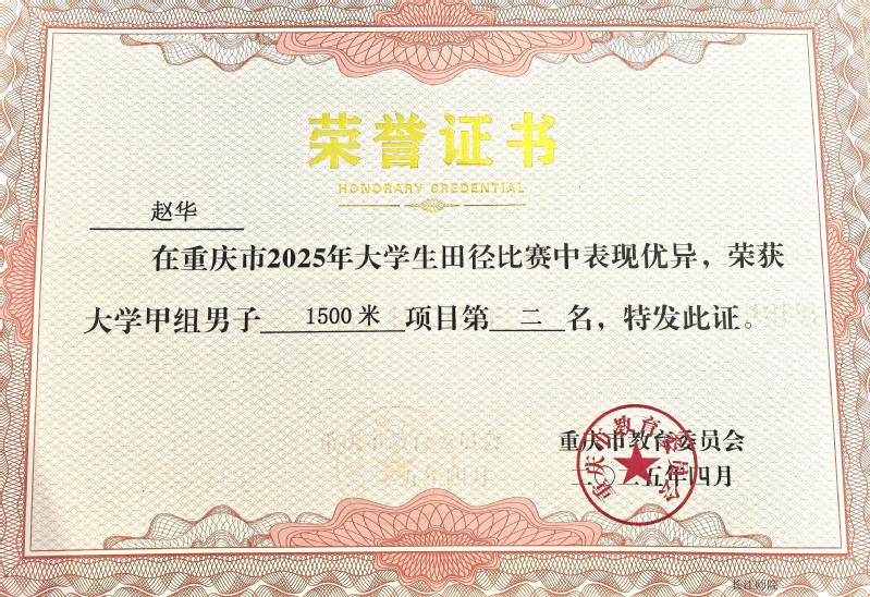 4月27日-30日,2025年重庆市老员工田径比赛在西南大学举行。公司2022级材料科学与工程专业1班赵华在男子1500米和男子5000米项目中获得小组亚军的好成绩。