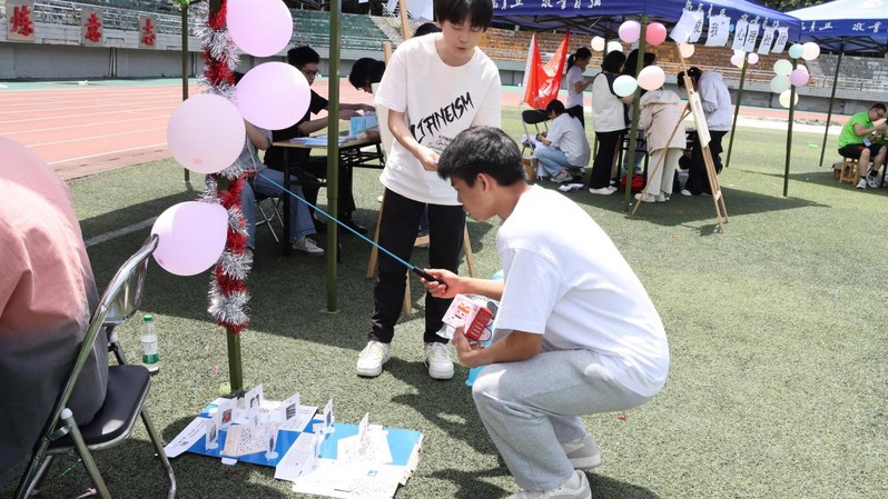 活动现场气氛热烈,同学们踊跃参与各项游戏。活动中,同学们每完成一项游戏任务,就能获得一枚印章,凭借积攒的印章可前往抽奖处兑换精美奖品。这种趣味激励机制极大调动了同学们的参与热情,现场处处可见团结协作的身影与洋溢的笑脸。不少同学表示,在游戏中不仅释放了学习压力,还学会了用创意表达情绪,更体会到与同伴互助团结的快乐。