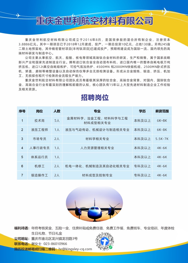 重庆金世利航空材料有限公司2025年招聘简章