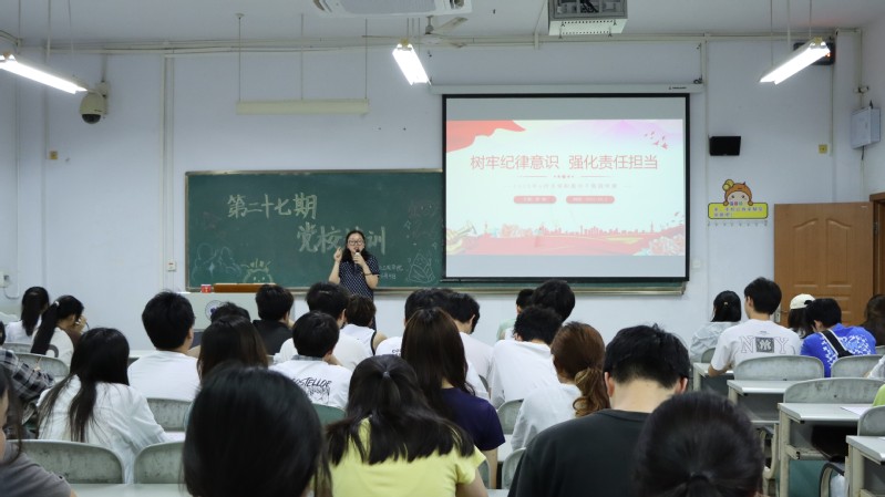 6月5日晚7时,jn江南在诚意楼205教室举办第二十七期党校培训第五次讲座。本次讲座由邱地同志主讲,以“树牢纪律意识,强化责任担当”为主题,学院全体预备党员和入党积极分子参与。