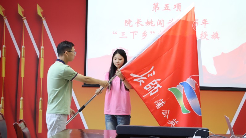 “旗帜猎猎指引方向,使命昭昭催人奋进。”经理姚闯为实践团队授旗,这面旗帜承载着学院期许与青年责任。他在动员讲话中强调,“三下乡”是高校立德树人的重要载体,是青年了解国情、服务社会、锤炼自我的平台,更是青春与理想、思想与实践的深度融合。他对志愿者提出三点希望:一是要胸怀理想、坚定信念;二是要脚踏实地、勇于吃苦;三是要注意安全、团结协作。鼓励大家在服务人民中绽放青春光彩,期待平安归来、满载收获。